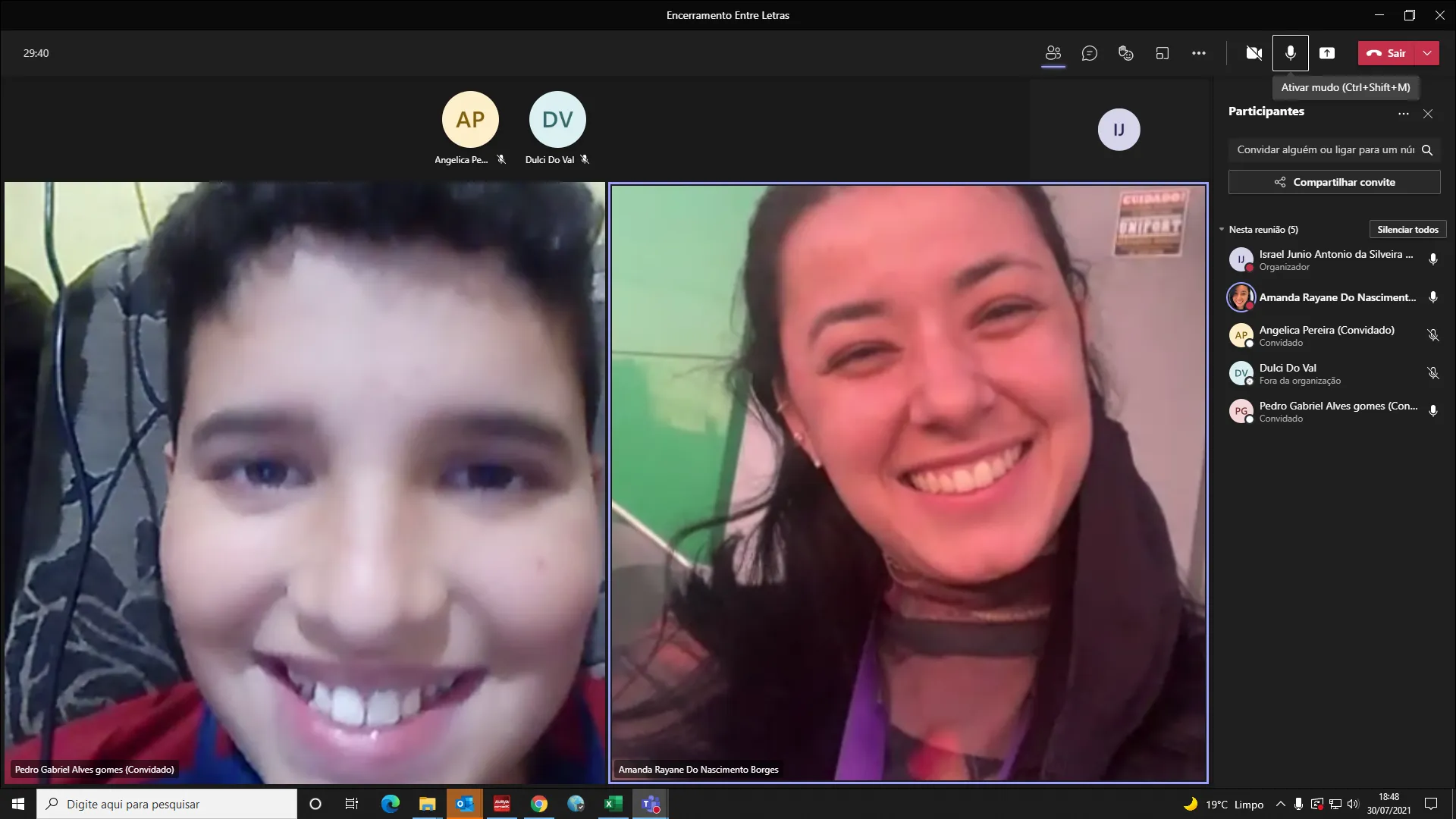 O encontro final, assim como todo o projeto, aconteceu de forma online e individual e, a primeira reação ao ligar a câmera, é sempre um sorrisão, iguais a esses das fotos! Todos os encontros foram sempre uma mistura de sentimentos: alegria, surpresa e uma vontade enorme de dar um abraço no novo amigo. Essa é a primeira edição que fazemos de forma virtual e a segunda já está em andamento, com novas crianças e outros voluntários. Além de praticar a escrita e a leitura, essa atividade resgata um hábito tradicional que é a troca de cartas entre amigos e, também desperta a criatividade dos nossos realizadores do futuro.